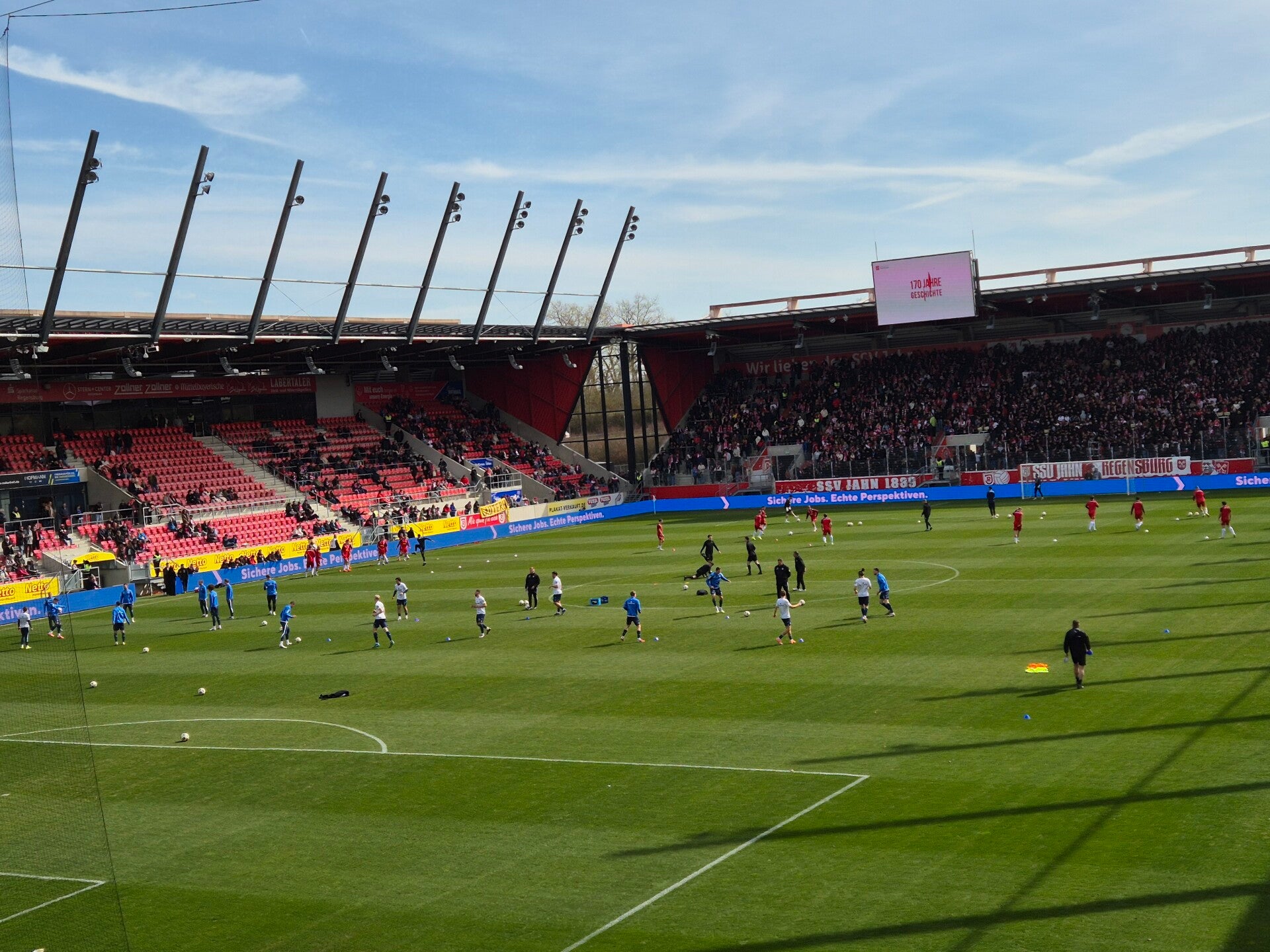 Es hatte ja alles so schön angefangen gestern. Ich durfte netterweise bei den Vierkirchener Löwen im Bus mitfahren. Die Stimmung war dank schönem Wetter, reichlich Bier und lustiger Leute bestens. Vor allem ahnten wir zu diesem Zeitpunkt noch nicht, dass wir trotz Abfahrt um 12:30 Uhr erst kurz vor Anpfiff im Dietmar-Hopp-Stadion sein sollten.